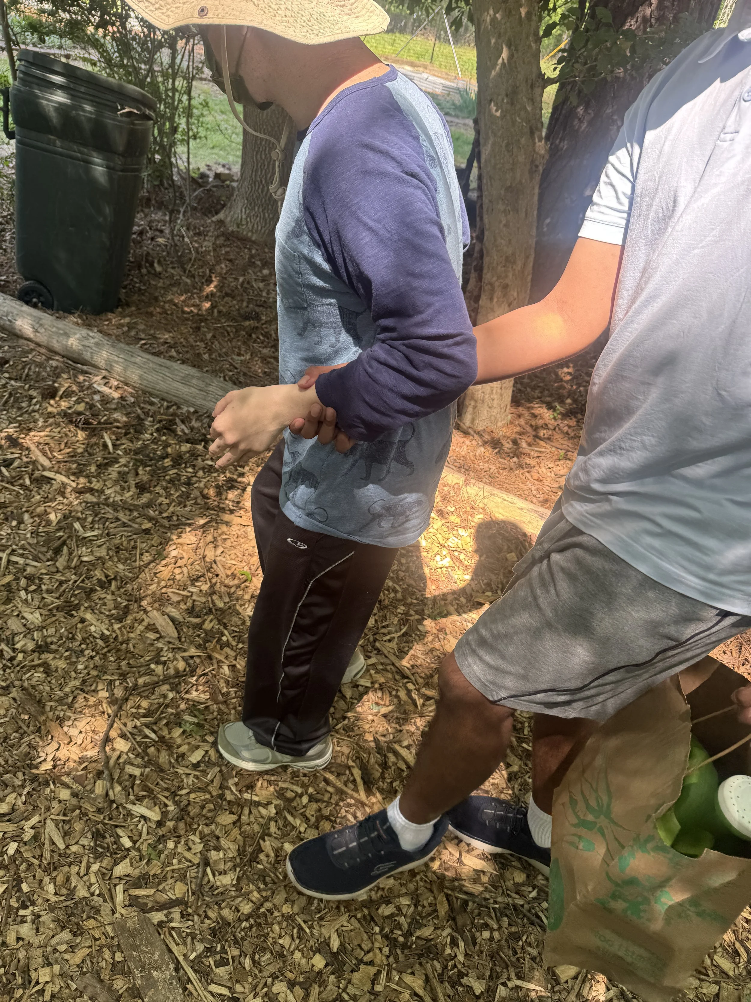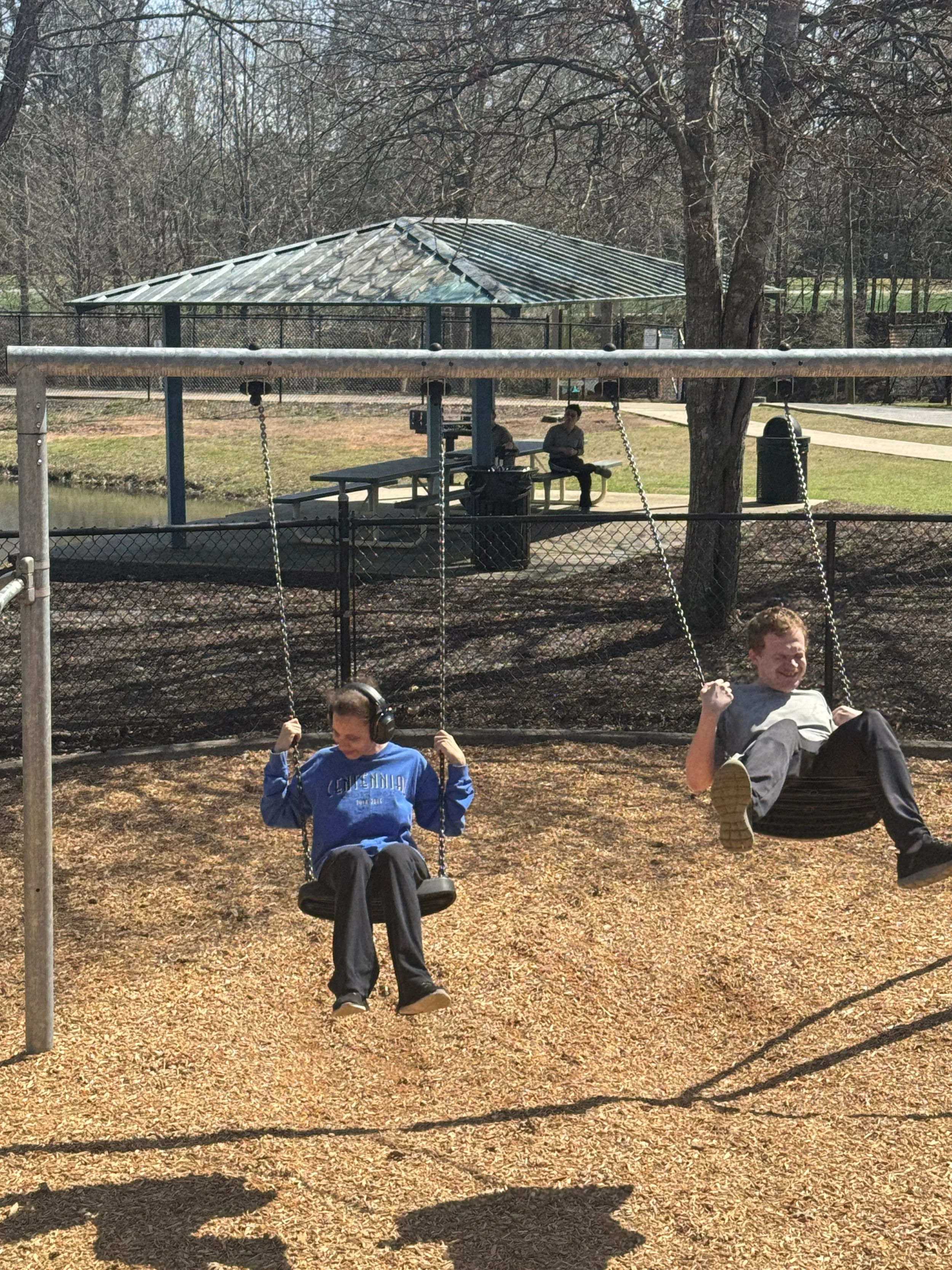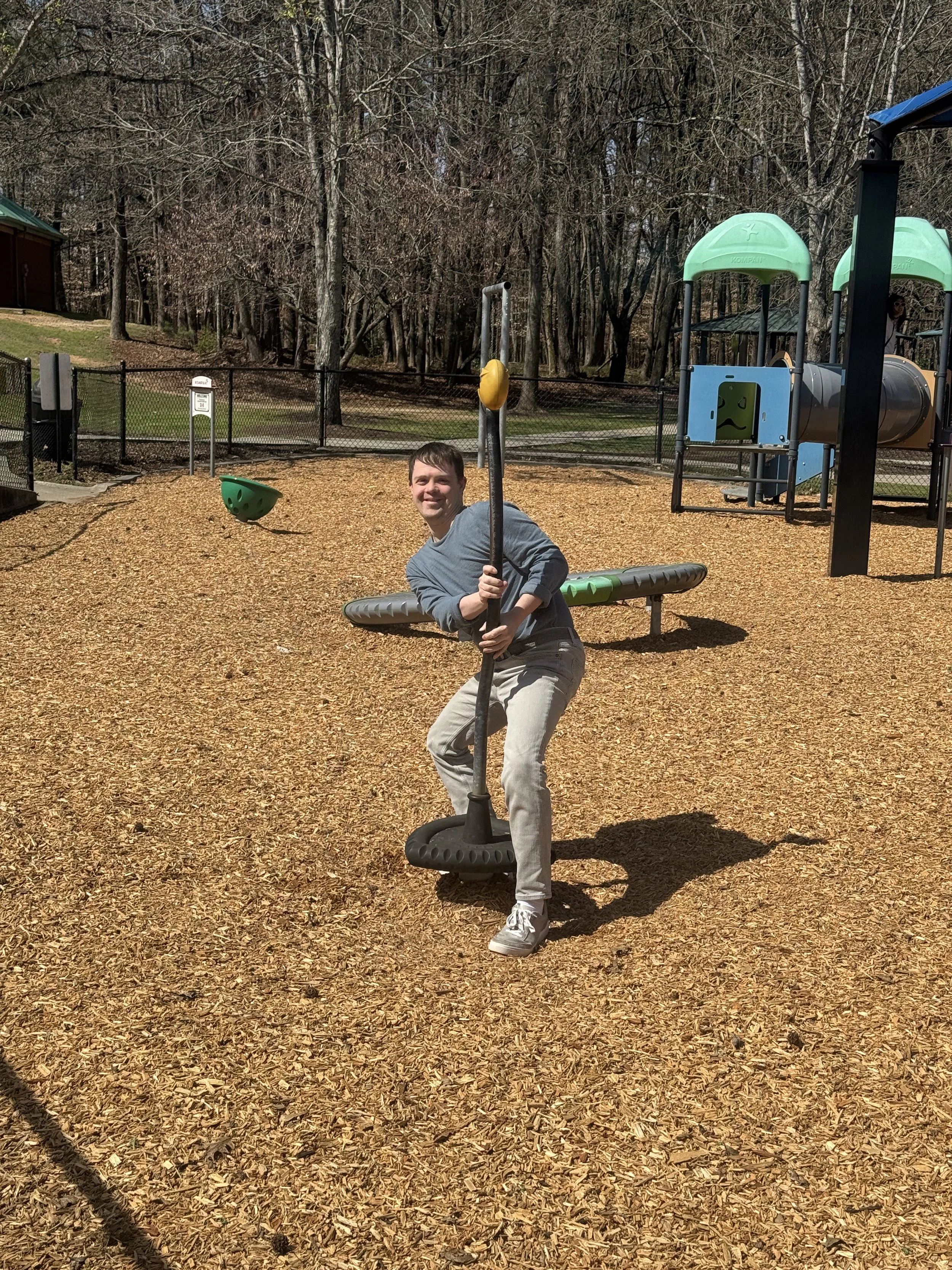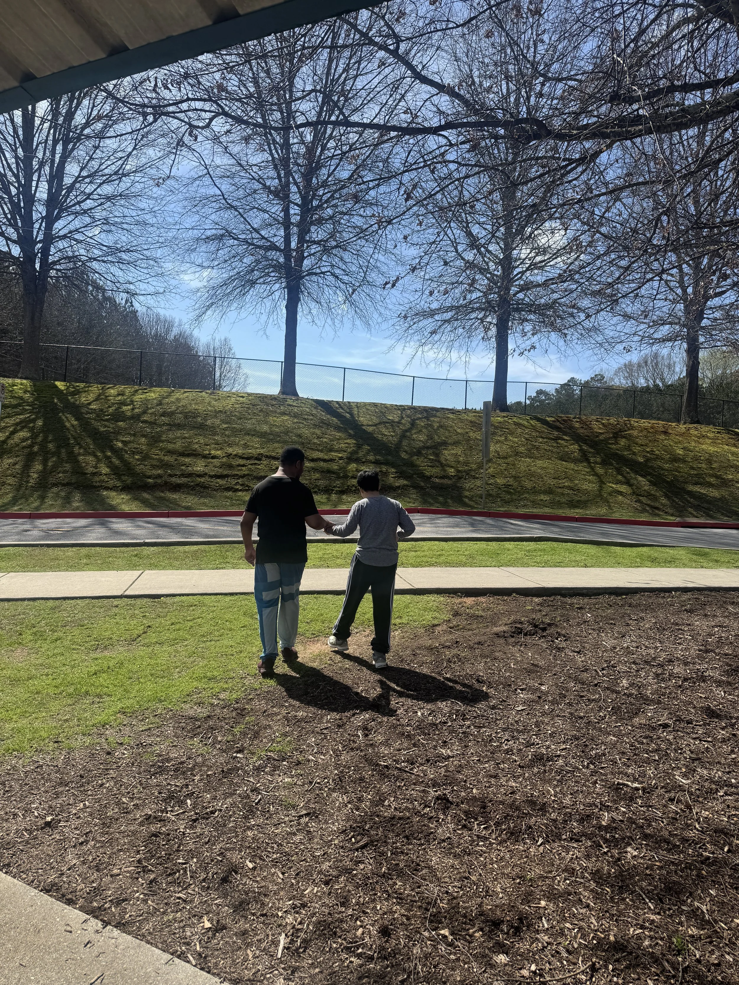 On Wednesdays, we go out to parks. Today we went to Chattahoochee Pointe Park in Suwanee. It is a beautiful and well-maintained park. The weather was perfect and the air was clear. We walked about a mile on trails and fields. We also learned how to walk with a dog properly. Burton is a registered service dog who joins us in many activities. We all enjoyed having him very much. It’s such a great day for us.